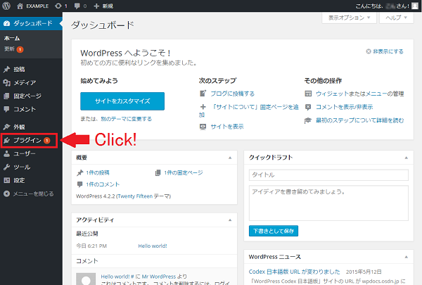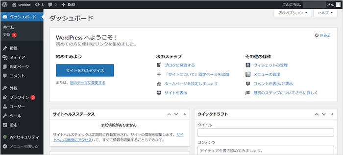 1『All In One WP Security & Firewall』をはじめ、WordPressのプラグインを有効化するには、WordPressの管理画面(ダッシュボード)にログインしてください。