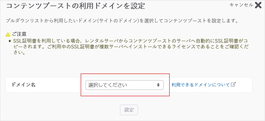 3ドメイン選択画面が表示されますので、プルダウンから設定したいドメインを選択します。