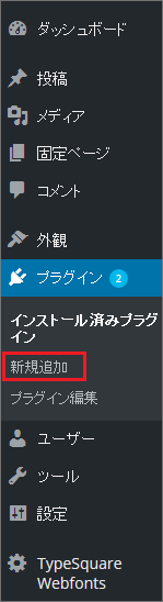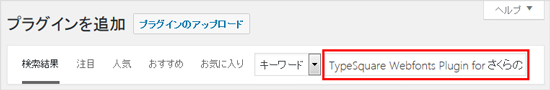 2プラグインの検索ボックスに「TypeSquare Webfonts Plugin for さくらのレンタルサーバ」と入力します。
