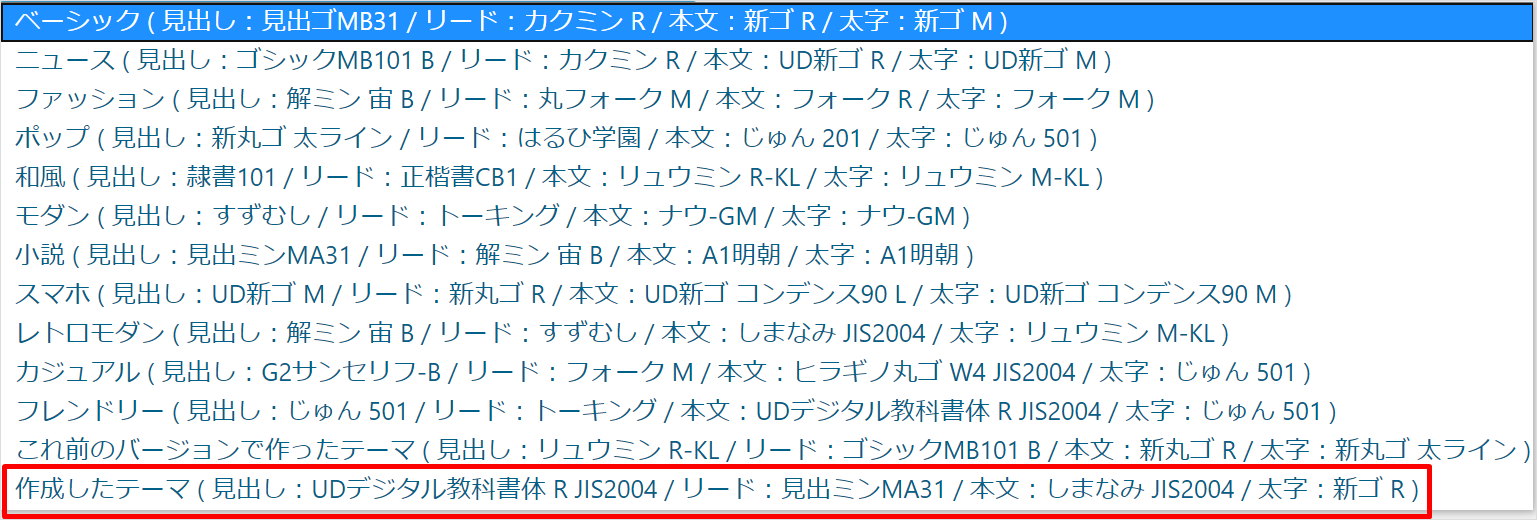 フォントテーマ個別表示設定