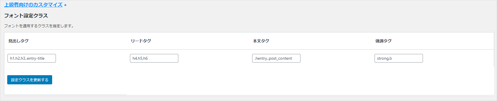 ※それぞれ設定されるクラスはTypeSquare Webfontsメニューの「上級者向けのカスタマイズ」に記載されているクラスになります。