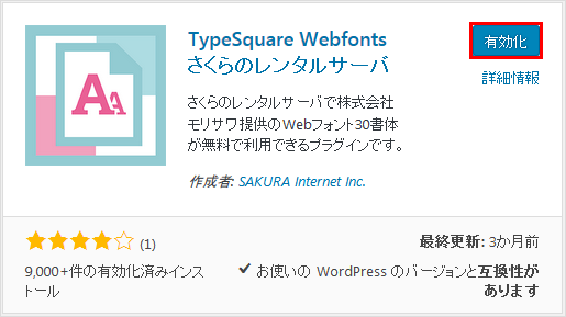 インストール済みプラグインからTS Webfonts for SAKURA RSを有効化します。