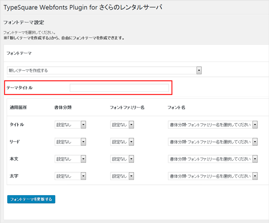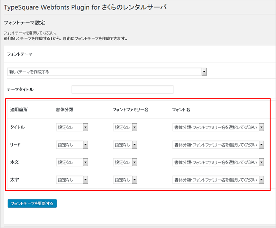 3フォントテーマメニューから好きなテーマを選択して、『フォントテーマを更新』するをクリックします。