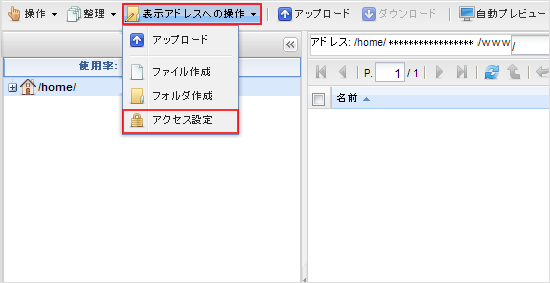 - ファイルマネージャーでは、/home/アカウント名/www より上位階層にはアクセスできません。