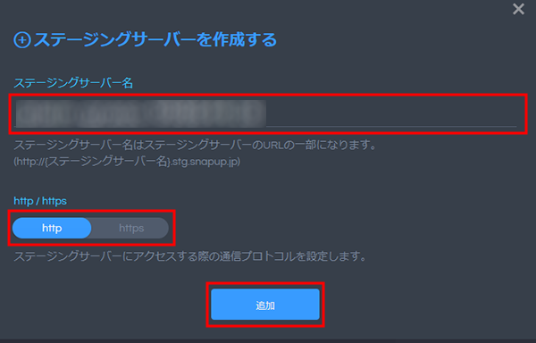 5ステージングサーバー名・通信プロトコルを設定し『追加』をクリックします。
