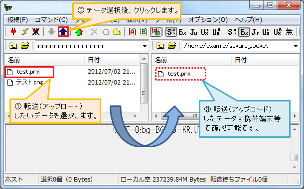 FTPソフトを用いて転送(アップロード)したい(さくらぽけっと)