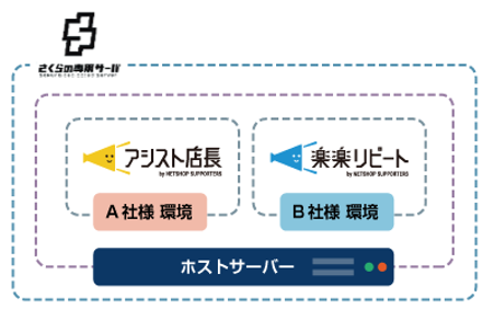 同社は、受注管理から在庫管理、顧客管理までネットショップの構築・運用に必要な機能を網羅する一元管理システム「アシスト店長」や、D2C・単品通販に特化した「楽楽リピート」、ECカート「楽楽CART」など多様なASPサービスを提供しています。最大の特長は、開発スピードと独自仮想化環境を使ったDR対策。さくら専用サーバーの中に独自で仮想化環境を構築し、データセンタートラブル時の対策がされています。「いつどこで災害が起こるかわからない時代。こういった独自のDR対策は必要不可欠と判断した。」と竹澤氏は述べます。災害時でも仮想化環境ごと別データセンターに移動できるので、リカバリしやすい構成になっています。