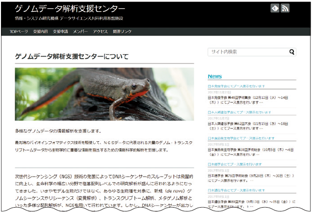 さくらのクラウド上で運用を開始した「ゲノムデータ解析支援センター」(https://genome-info.nig.ac.jp/)のサイト。