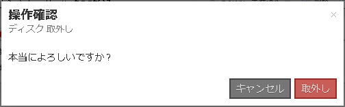 4. ディスク右側の「×」ボタンをクリックし、確認画面で「取外し」ボタンをクリックします。