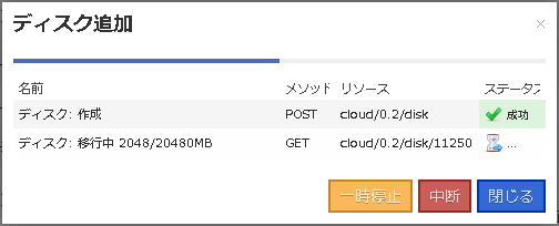 8. 新ストレージへのディスク作成と、旧ストレージからのデータ移行作業が開始されます(ディスク容量によっては時間がかかる場合があります)。