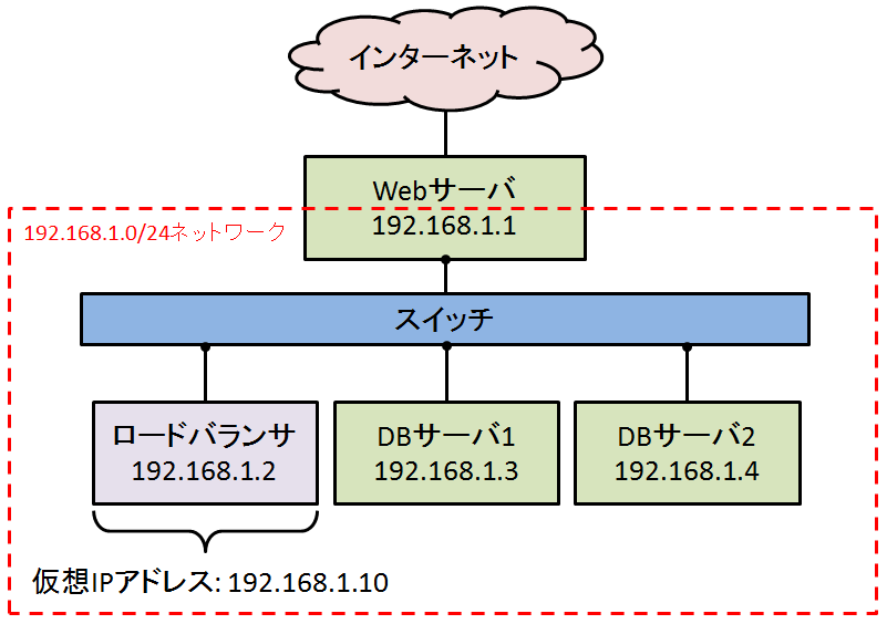 | ロードバランサ仮想IPアドレス | 192.168.1.10 |
