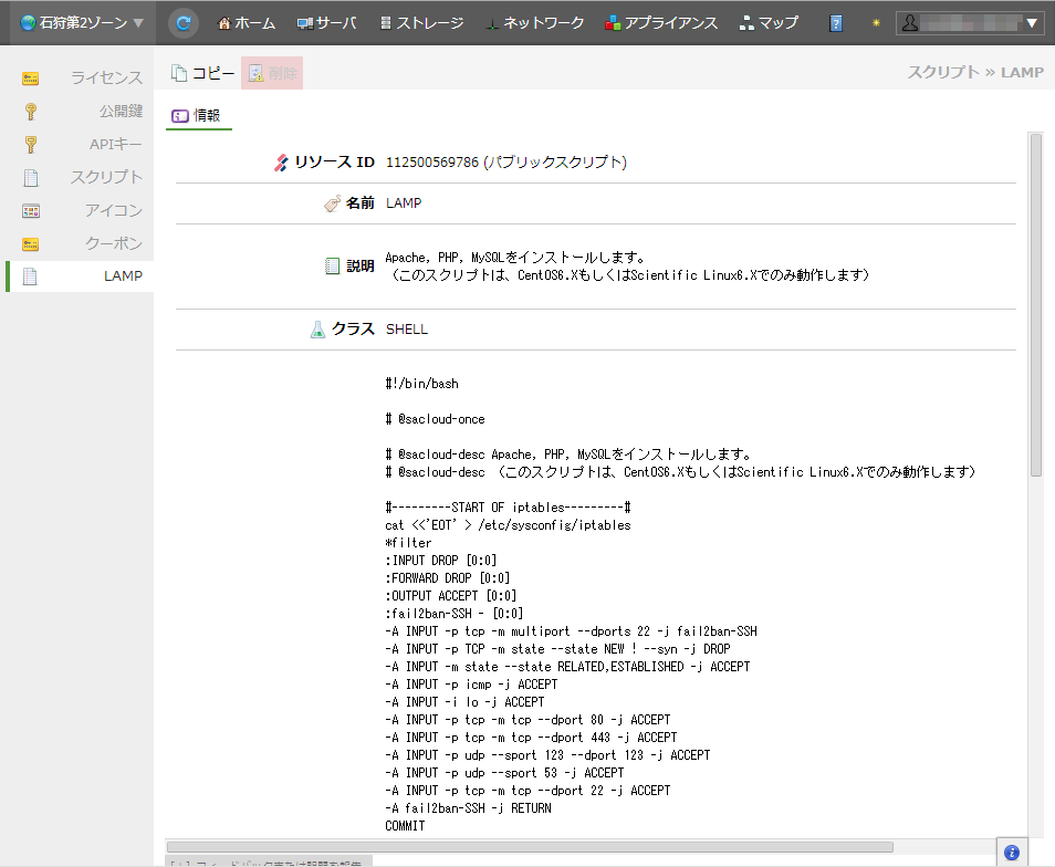 ■ LAMP (スタートアップスクリプトID: 112500569786)