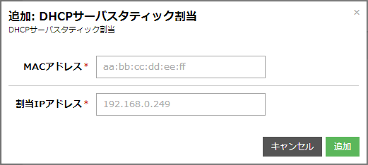 | 「MACアドレス」欄で指定した仮想サーバに割り当てるIPアドレス |