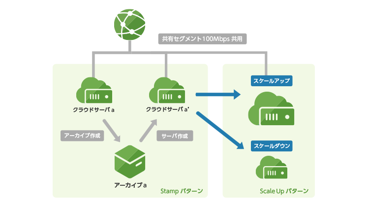 - サーバー作成後もCPUコア数/メモリ容量/ストレージの増設が可能