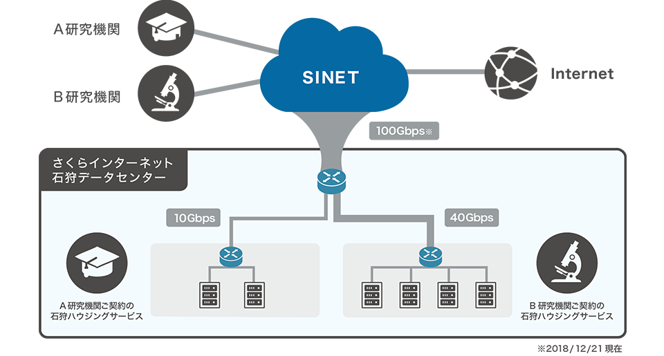 学術研究機関から、国立情報学研究所(NII)が提供するSINETネットワークを通じて当社のサービスに接続できます。