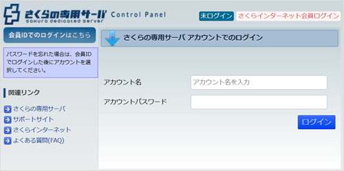 各サービスのコントロールパネルへのログインページについてご案内しています。