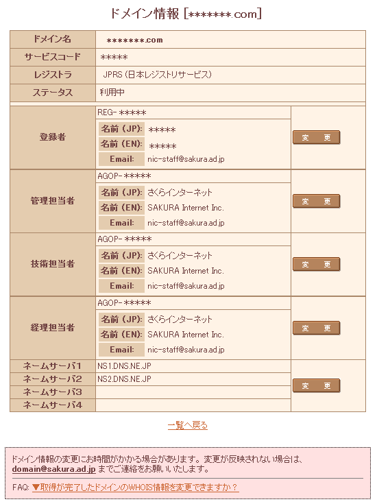 JPRS管理のgTLDドメインについては、以下の手順にてご変更ください。 - ドメインの公開情報は、WHOISデータベースにより全世界で検索・閲覧が可能な情報です。