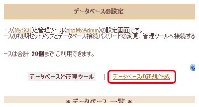 WordPressを利用するには、データベース(MySQL)を作成する必要があります。