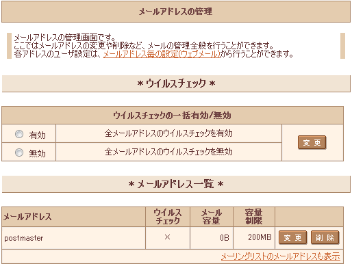 postmaster は管理者用のメールアドレスとして初期状態より存在しています。