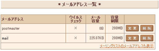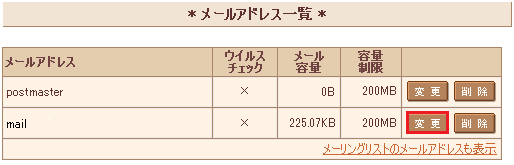 | メールアドレスの変更 | メールアドレス名を変更できます。 |
