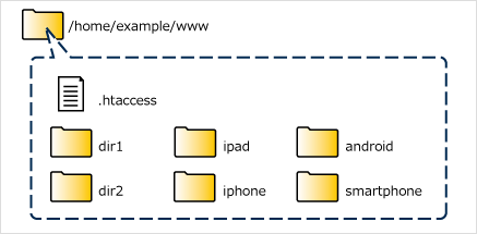 .htaccessを配置することで、ウェブアクセスに関わる設定を行なう事ができます。