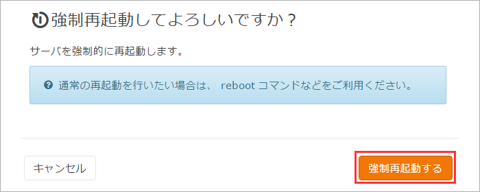 確認画面が表示されます。サーバを再起動する場合は、「 強制再起動する 」をクリックします。