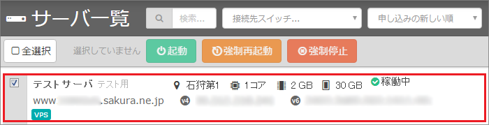 サーバ一覧から、対象サーバをクリックします。