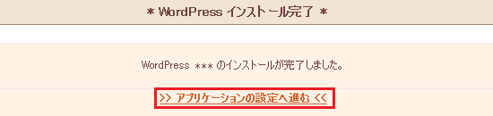 | インストール先 | アプリケーションをインストールするフォルダを指定します。 フォルダ名「 wp 」は一例です。 お客様のお好きなフォルダ名で指定してください。 |
