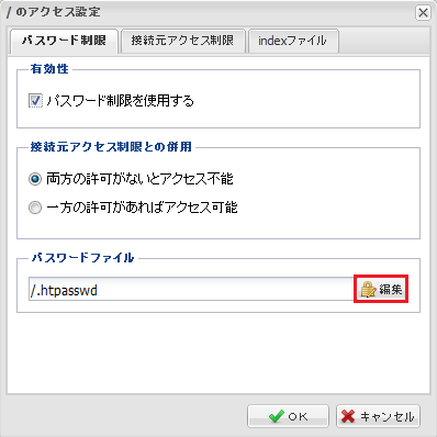 『 パスワードファイル 』項目の、『 編集 』ボタンをクリックします。