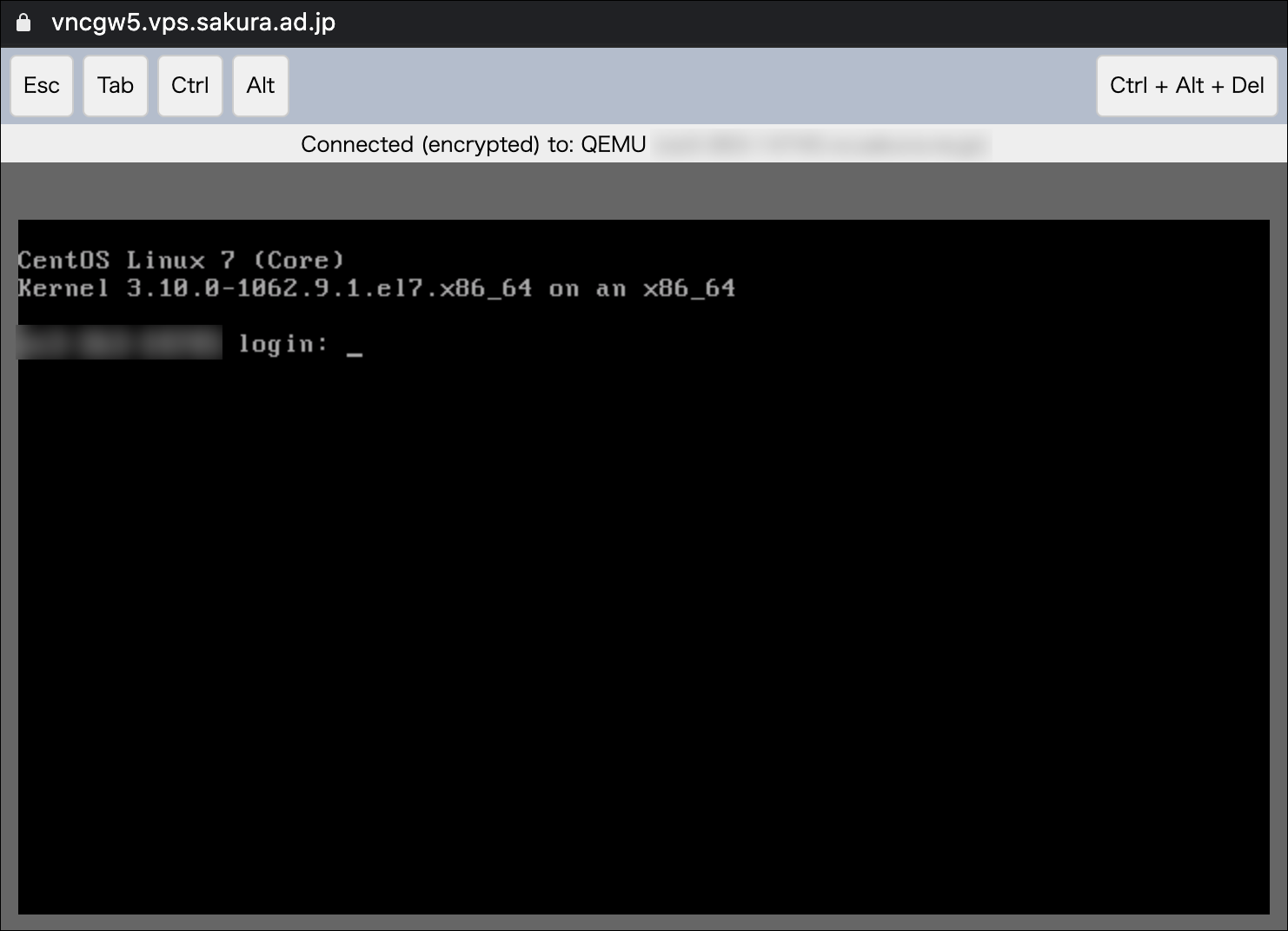 VNCコンソールが表示され、コンソールの入力が可能になります。