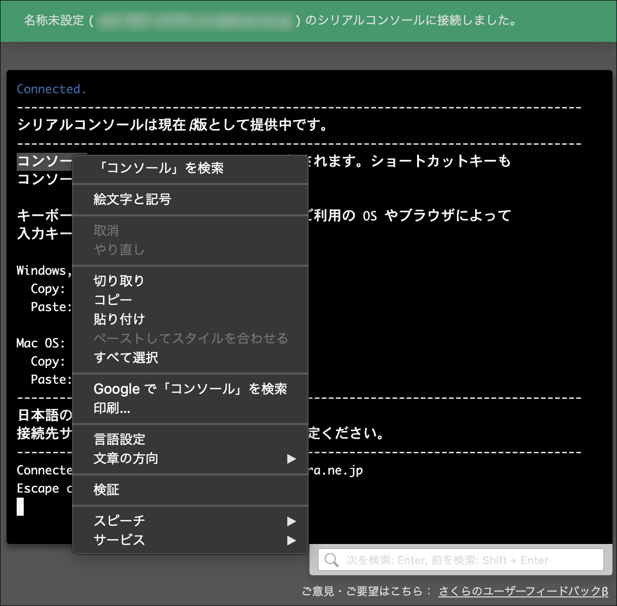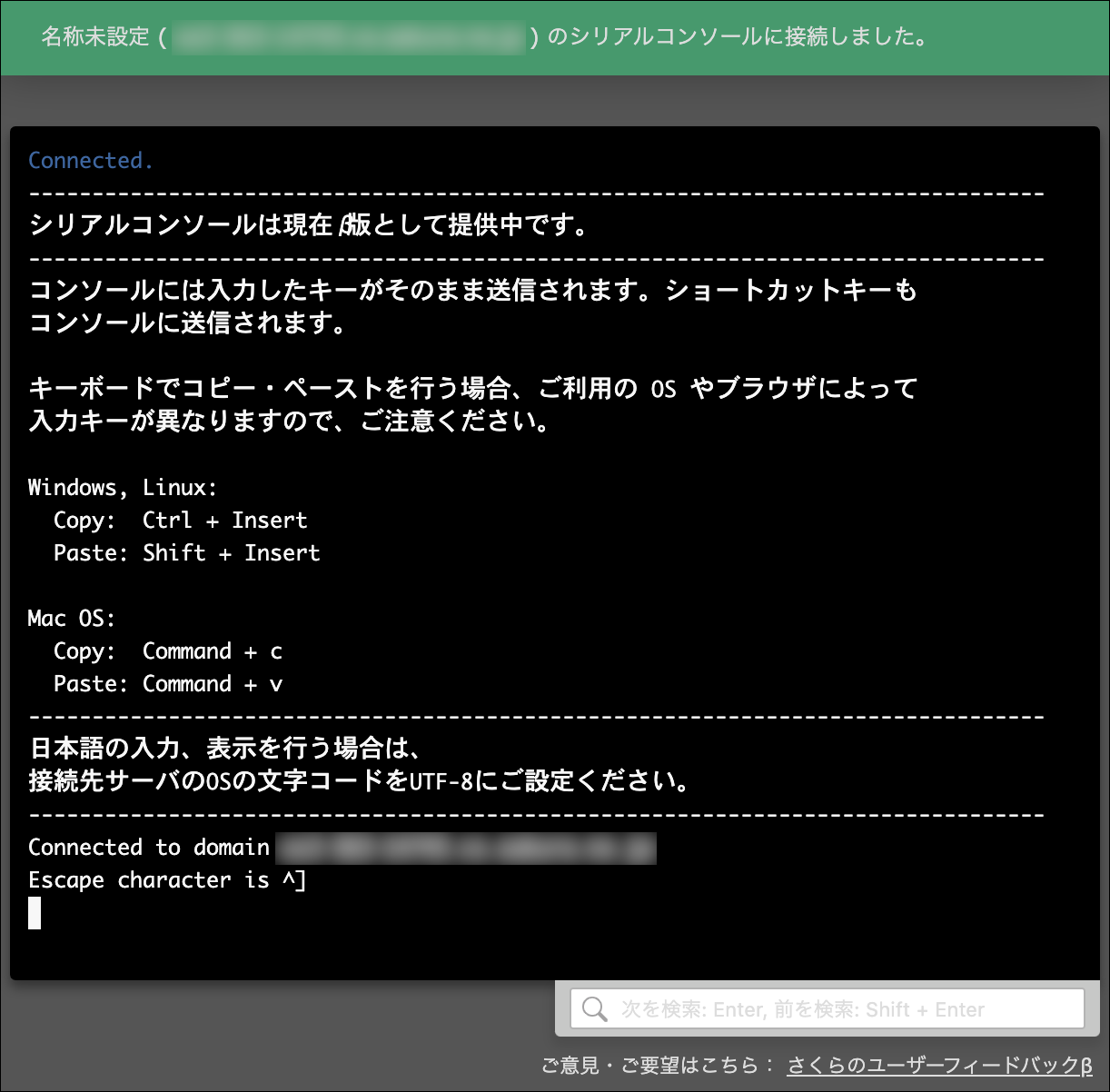 シリアルコンソール(β版)が表示され、コンソールの入力が可能になります。