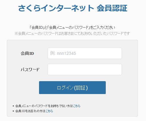 | パスワード | 会員メニューパスワード お申込み時に、お客様にて決めていただいた任意のパスワード 紛失された場合は「会員メニューパスワードの変更・再発行」をご確認ください。 |