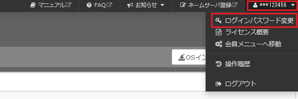 会員メニューからサーバコントロールパネルにログインする場合
