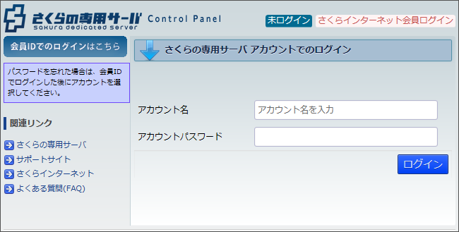 「さくらの専用サーバ」コントロールパネルにログインします。