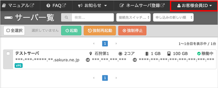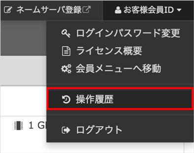 コントロールパネルの右上上部の会員IDが表示されている部分をクリックします。