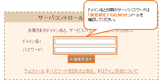 「ドメイン名」と「パスワード」を入力し、「送信する」をクリックします。