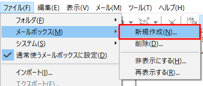 1『 ファイル 』メニューから『 メールボックス 』を選択し、『 新規作成 』をクリックします。