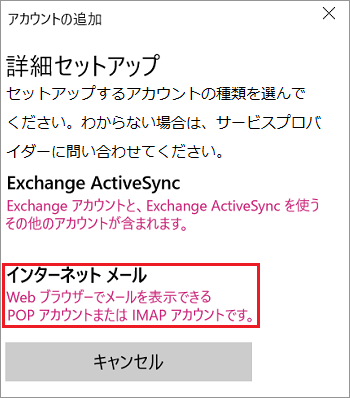 3「 詳細セットアップ 」の画面で『 インターネット メール 』をクリックします。