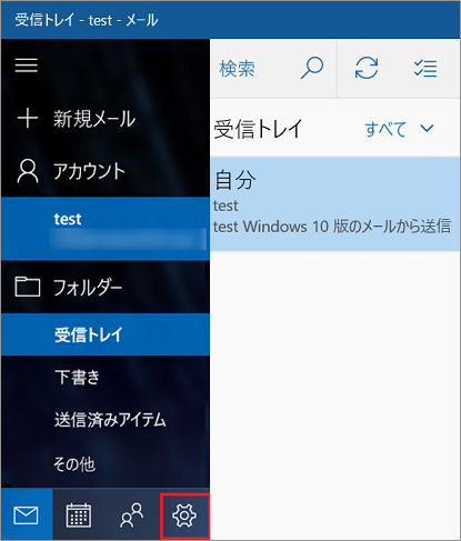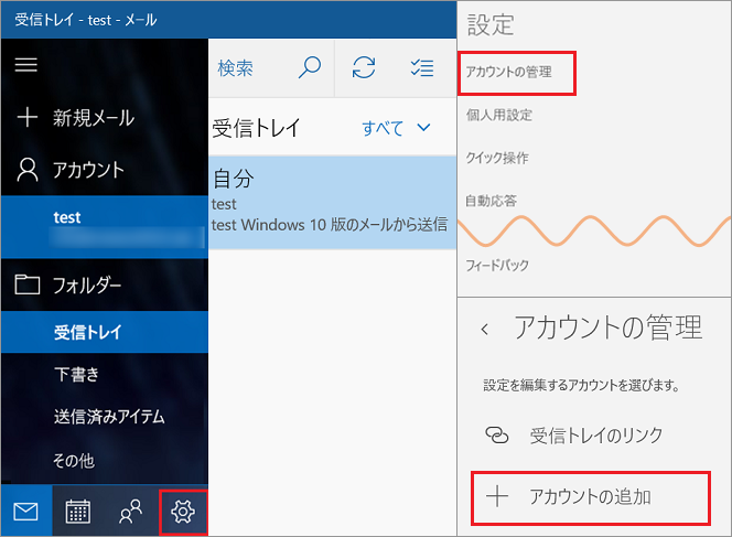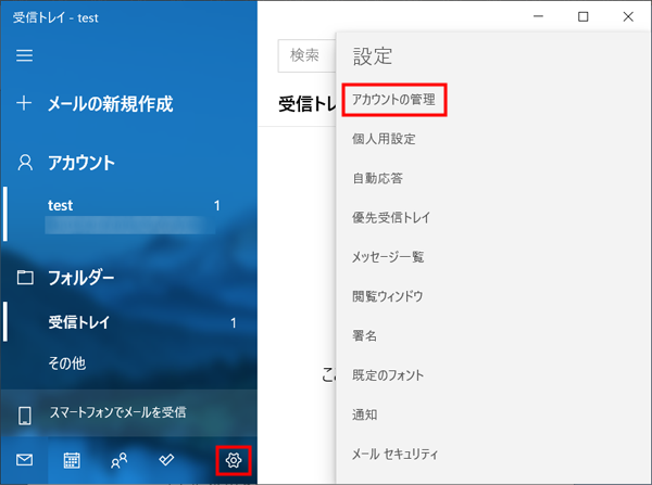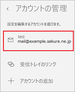 メールアカウント設定画面の表示