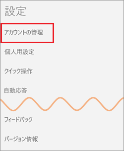 2設定の画面が右側に表示されます。『 アカウントの管理 』をクリックします。