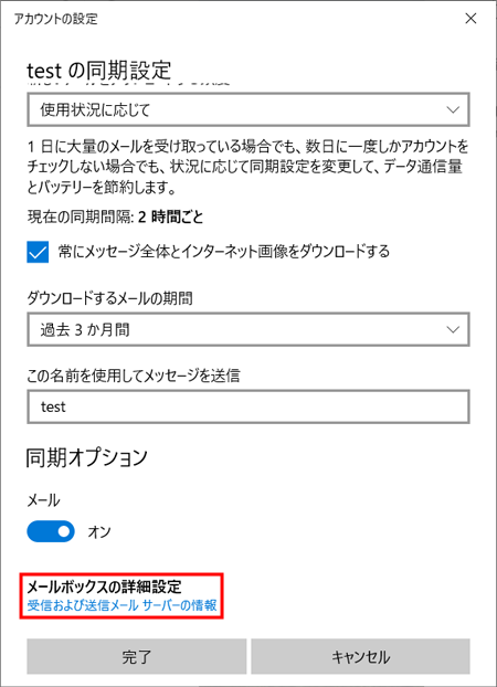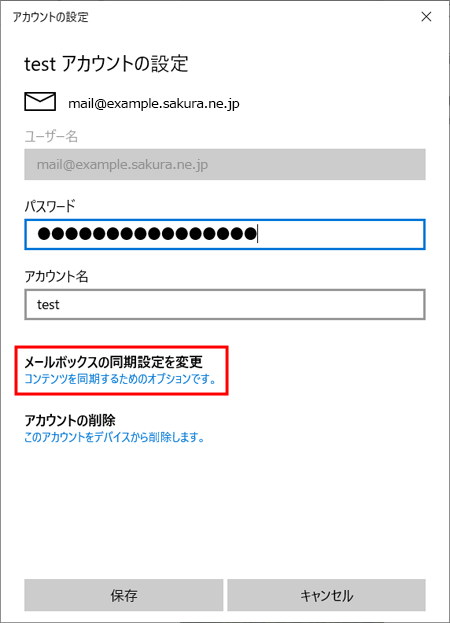 編集後、『 メールボックスの同期設定を変更 』をクリックします。