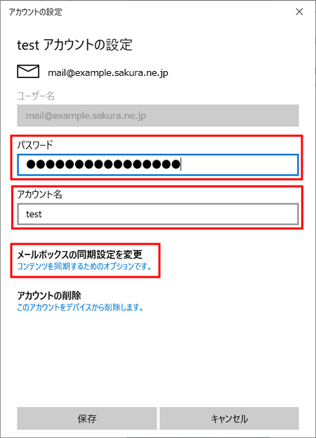 10アカウントの設定画面に戻りますので『 保存 』をクリックして、設定は完了です。