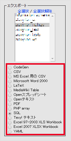 実際には移行先のデータベースでインポート可能な形式を選択します。