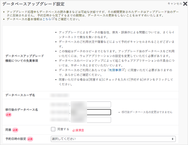 なお、データベースを削除していいかわからない場合は、移行後のデータベース名に別名を指定してアップグレード機能をご利用ください。