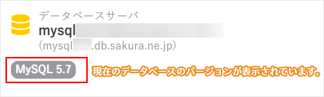 サーバーコントロールパネルから、データベース欄を開いていただき、下記画像の数字マークがバージョン番号になります。