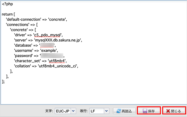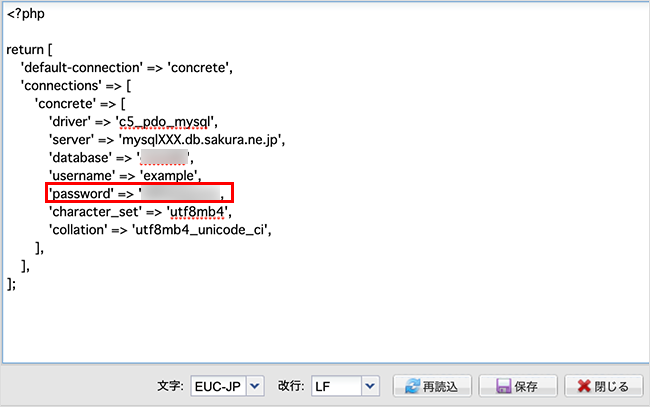 DATABASE_URL=mysql://example:DBpassword@mysql57.アカウント名.sakura.ne.jp/example