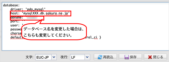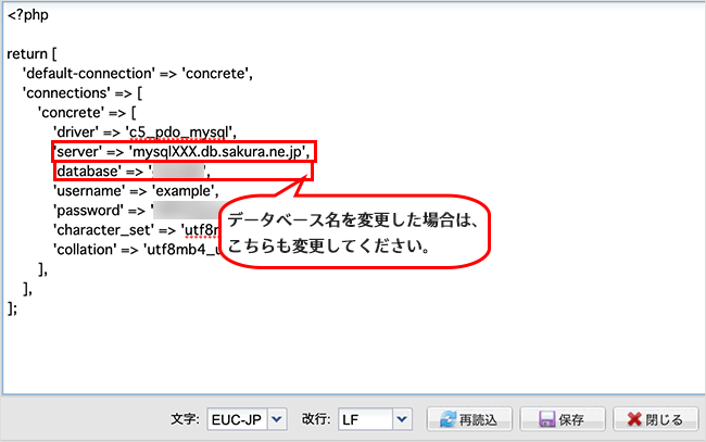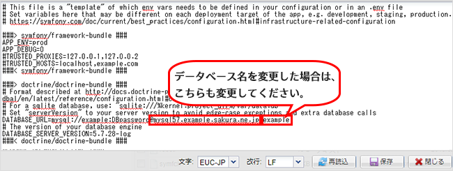DATABASE_URL=mysql://example:DBpassword@mysql57.アカウント名.sakura.ne.jp/変更後のデータベース名