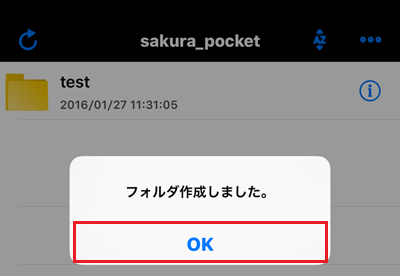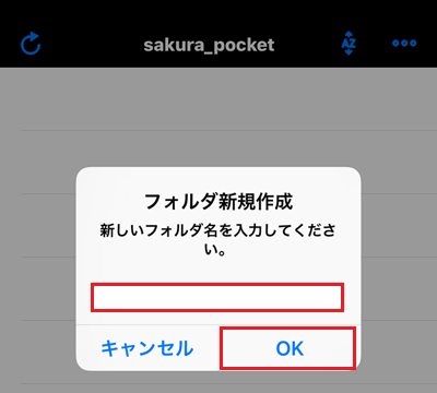 3フォルダ新規作成画面が表示されますので、任意のフォルダ名を入力し『 OK 』をタップします。