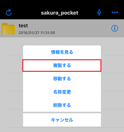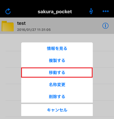 3さくらぽけっとの利用フォルダをタップしメニューを表示させます。