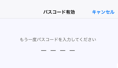 先程決めたパスワードをもう一度入力しますと、設定完了です。